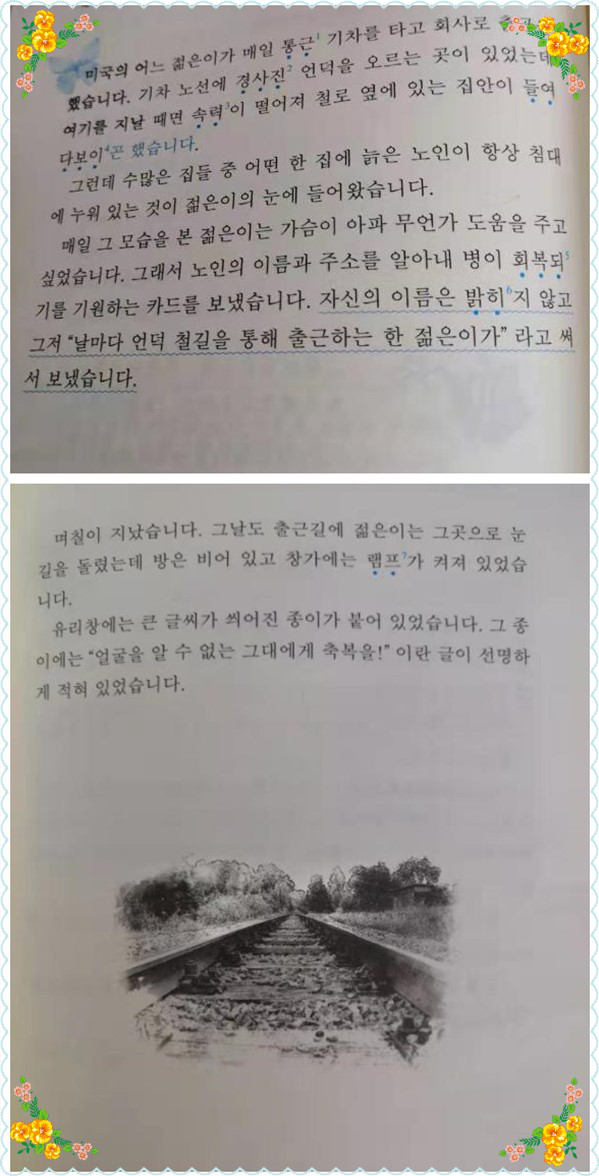 每天看到這幅場景,小伙子感到心里很難過,就想給與老人幫助。所以他打聽了老人的姓名和地址,給老人寄去了祝他康復的卡片。小伙子沒有署名,落款是“每天都坐火車上班的年輕人”。